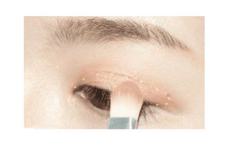 步骤2:然后再沾取橘色眼影,涂抹在双眼皮褶皱处,这样可以让眼睛更加深邃。