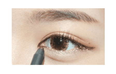 步骤3:接着再取出一棕色眼线笔,填满上眼皮睫毛之间的空隙,并且眼尾处平拉延长。然后再勾勒一下下眼睑眼头部位,这样能够放大眼角,看起来更加的无辜**哟~