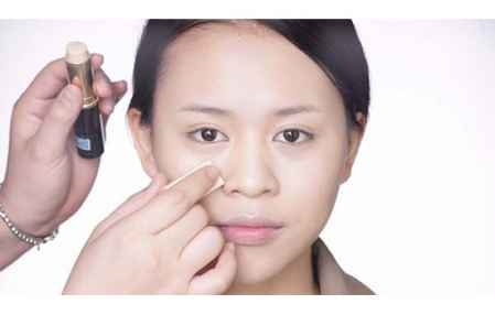 第一步:用一个要接近自己的肤色粉底上底妆,用打底海绵推开粉底,薄薄的一层。