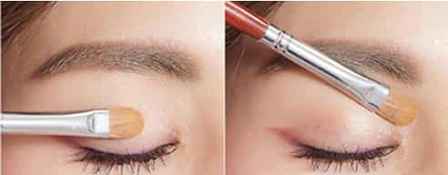 Step 4:扁平的眼影刷蘸上酒红眼影,刷在叠加的眼线上,眼线的颜色能更加饱满持久。