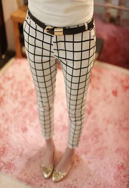 超帅的一条潮味十足的铅笔长裤,随意的搭配就很有新意了哦,四季都能穿的呢,修身的版型,有效提升**身材比例,格子的设计将**腿型完美分割成黄金比例,轮廓也非常的饱满,无形中就拉长了**腿型。