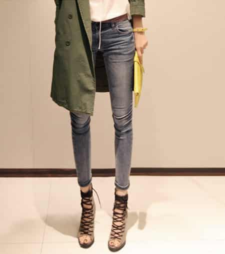 简约浅色磨破设计九分牛仔裤,裤腿边的短流苏设计新颖时尚,有效过渡了脚踝到小腿的曲线,磨破的设计可以个性可以时尚,当然也可以露出一些肉肉,展示出你性感的一面,淡色系也很百搭很有森系风哦。