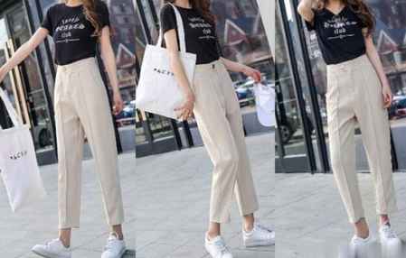 经典百搭的九分小脚西装烟管裤在春季显得特别活跃,实穿的场合也很广泛,微哈伦的版型,不挑腿型特显腿直,也不挑身材,微胖的仙**可以穿,和黑色的字母T恤相搭,很显腿长,凸显女性时尚魅力。不得不说,这身搭配,打造春夏季标配组合,居家旅行必备啊。