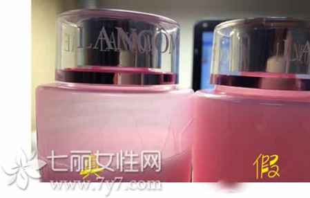 兰蔻粉水真假对比:瓶身接缝