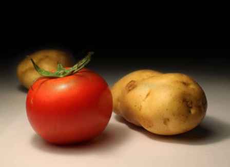 土豆会在人体的胃肠中产生大量的盐酸;西红柿在较强的酸性环境中会产生不溶于水的沉淀,从而导致食欲不佳,消化不良。