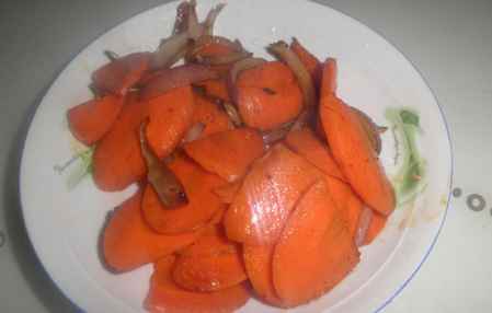 材料:胡萝卜200克,香菜、青蒜各10克,植物油9克,酱油10克,盐5克,葱、姜各2克。