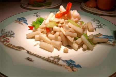 最后把酱料铲在焯好水的藕尖上,。脆爽可口的藕尖做好了。