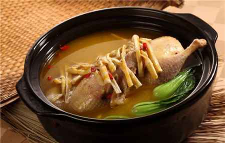 食材:乌骨鸡1只,当归、黄芪、茯苓各9克。