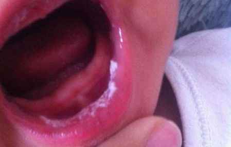 鹅口疮通常在牙龈周围形成,周围无炎症反应,有斑片状白膜附着,形似奶块。用棉签可轻轻剥去,剥去白色黏膜后,基底部充血明显。轻微感染时,白斑不易发现,也没有明显的痛感,或仅在进食时有痛苦表情。严重时宝宝会因疼痛而烦躁不安、胃口不佳、啼哭、哺乳困难,有时伴有轻度发热。