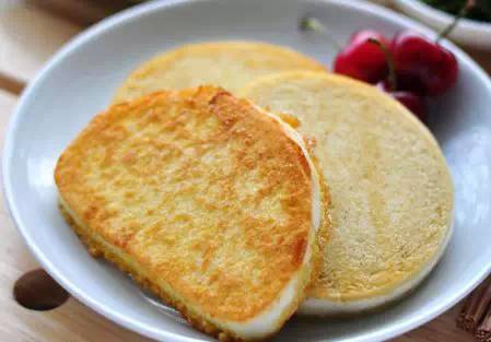 4.热锅中入凉油,逐片下入沾裹鸡蛋的馒头片,一面煎至金黄后翻面,再煎至金**,即可。