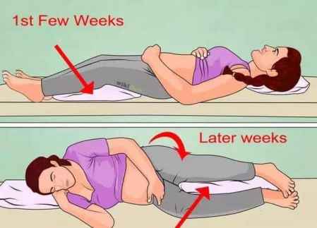 1、把枕头放置好后,缓慢小心地躺下床,仰卧在床上,靠近床头,移动**身体躺在最舒适的位置,然后,用**双手支撑自己,向左侧趟着。稍微弯曲**膝盖。想象自己是一个婴儿的睡姿。