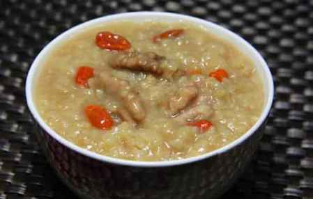 材料:桃仁10克,枸杞子15克,粳米100克。