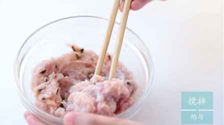4、肉泥中加入蛋清、香菇碎和玉米淀粉,搅拌均匀