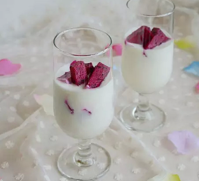 做法:酸奶机内桶用开水清烫干净,将800克鲜牛奶入桶中,再将一小包冷冻保存的鲜奶菌倒入牛奶中,用干净的勺子搅拌均匀,烫桶的热水可以掉在酸奶机胆中,这样可以使桶中牛奶受热均匀,盖上内盖、外盖,通电,开始加温,几个小时后,就可以得到光滑细腻的原味酸牛奶,盖上盖子入冰箱冷藏几个小时后食用,营养和味道更好。杯中倒入适量原味酸奶,加入火龙果块,就做好啦!