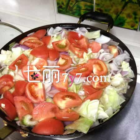 洋葱切成三角形;把其它蔬菜切块加水,放入少许盐、辣椒或其他调料。先用大火煮10分钟,再用小火继续煮,直到把蔬菜煮烂为止。