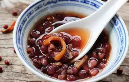 做法:先把红豆浸泡半个小时.然后把500毫升清水煮滚,放入红豆,煮30分钟左右,把红豆煮熟,熄火。先用热水把陈皮浸软,待红豆煮熟熄火后就放入陈皮,上盖,焖10分钟,放入盐调味即可食用。