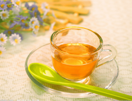 做法:从超市购买的干玫瑰花6颗,用一杯温开水冲服,加入一汤匙蜜。