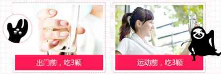运动前吃3颗,增加自身温度,提高新陈代谢,燃烧更多脂肪