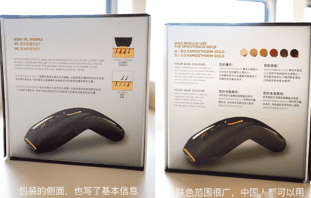 可以从外包装辨别smoothskin的真假,正品的包装上的文字是比较清晰的,不会有印刷不清的情况出现。而如果是假的脱毛仪,那么包装上的字体则存在印刷不清的问题,让人一看就有一种廉价感。正品smoothskin脱毛仪的灯头面积是3c㎡,而假的灯头面积则不是3厘米,而是做得较大。