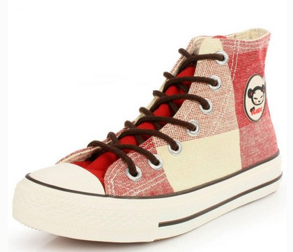 这款娃娃图案帆布鞋,格子的花纹加上中国娃娃的头像的设计,很有甜美的风格,同样也是高邦的设计,更能彰显出春夏季节中那种活力动人的潮范,休闲时尚又不失潮流气息。