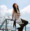 Kristina Bazan:高开叉毛衣的休闲搭法
