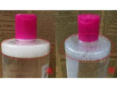 正品的液体摇晃后泡沫细腻丰富,经久不散;假货的液体摇晃后泡沫大而且少,持续时间短。