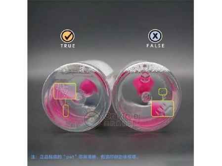 正品瓶底的PET 字体印刷清晰,而假货一看就很模糊~