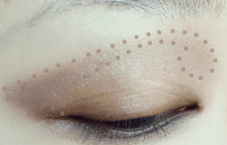 第一步:将美宝莲单色眼影#03和爱丽小屋单色眼影BR401用刷子混合,涂抹在眼窝画出轮廓,打造深邃眼窝。