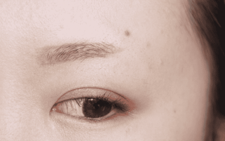 第三步:最后用眉粉端填补空缺,加深眉毛的颜色,主要是眉尾部分,眉粉营造出毛茸茸的感觉,眉头部分轻轻带过即可。