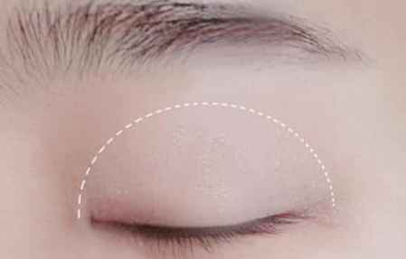 用最浅的珠光色用中号眼影刷刷在如图所示的位置,提亮整个眼窝。