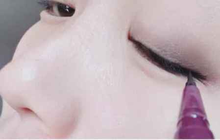 用眼线液笔来加强眼尾,仔细描画,眼线长度不要超过眼影范围即可。