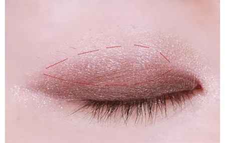 第二步:用眼影刷沾取棕色眼影,晕染到图上红**域内。会比较有层次感。