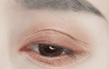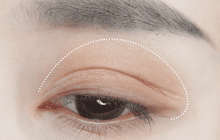 第二步:深金杏色眼影用扁平眼影刷沾取,加深双眼皮褶皱内及下眼眶,打造轻柔深邃轮廓。