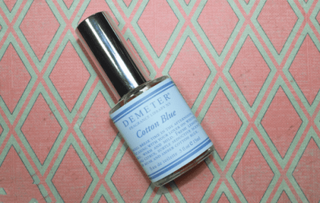 蓝棉花的名字是直译的,这个名字可能想表达阳光下洗完后的白棉布味道吧。算是气味比较淡的一瓶,除了刚喷上那会气味很明显,有一点鲜**和柑橘的前调味道,之后就是淡淡的温和的,一种洁净的床单配上甜甜的棉花糖的感觉。