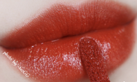 阿玛尼405g的外貌变了,纸盒外壳变成了圣诞红,瓶盖有部分的金属光泽,和闪光质地对应,非常的美。唇釉本身是细闪,很低调的那种闪,涂在嘴唇上是一点都不熟悉,和405本身的颜色搭配起来,是非常的绝配,很有档次。