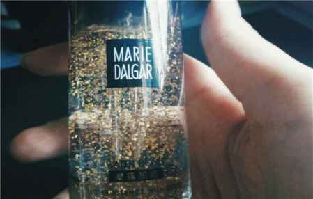 这款妆前乳是透明凝胶质地掺上小金箔,在脸上推开后是水水的,很好推开。