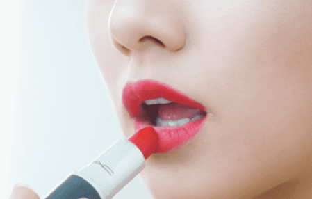 第三步:选择一款哑光复古红色唇膏,唇部进行打底后,涂抹整个嘴唇即可。