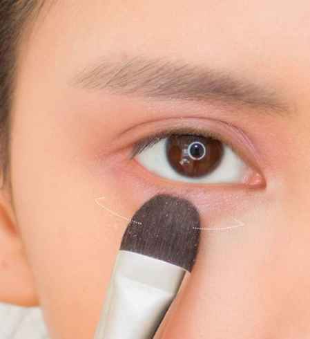 迷蒙的双眼素来不克不及缺乏上下一起晕染,所以深色眼影还要在睫毛线外平均涂开。