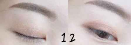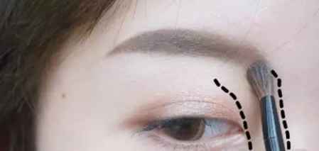 第七步:先用浅棕色眼影平铺上眼皮,然后用棕色眼影画在双眼皮这周内,再用深棕色加深上眼尾以及下眼尾后三分之一,最后用粉色打亮上眼皮**位置以及眼头。