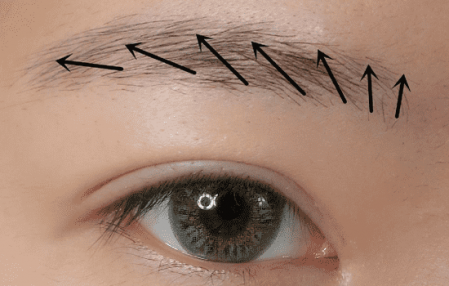 这次妆容走清淡路线,所以眉毛只要顺着眉型填充就好,这里用的是灰色眉笔,比较适合黑发姑娘。