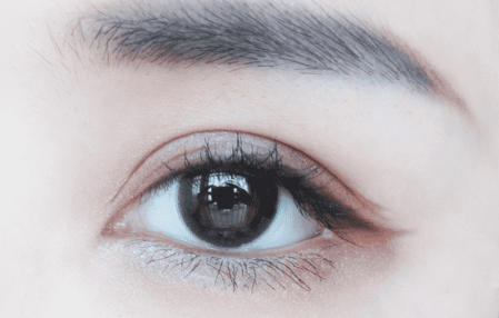 第二步:棕色眉粉大致画好眉形,接着用黑色眼线膏填充内眼线,棕色眼线液笔画好外眼线,眼尾拉长并微微上翘。夹翘睫毛,刷上睫毛膏即可。