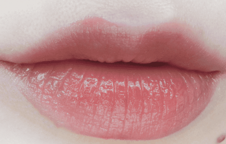 唇釉颜色选择了裸橘色,均匀涂抹在嘴唇上。水润嘟嘟的,很提气色,更加分。