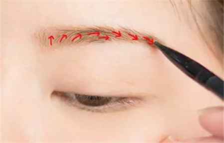 第二步:用眉笔沿着眉毛自然地生长方向,画出一个自然的眉形。