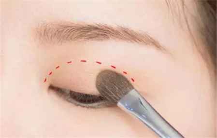 第四步:用大号的眼影刷,沾取一个哑光浅色的眼影,在上眼皮处大面积打底。