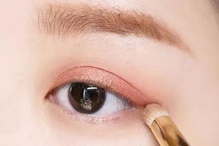 STEP2:杏色的眼影涂抹在米色眼影之上,有了浅色眼影的打底,杏色会更加显色。