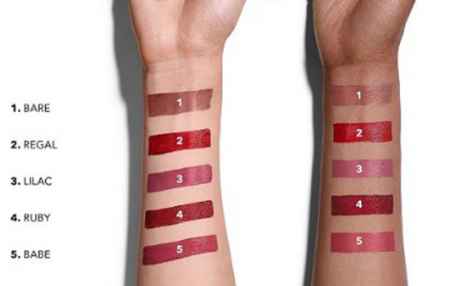 包含五款炙恋唇膏的热门色号,从上至下分别是:2号色Bare、12号色Regal、20号色Lilac、4号色Ruby、7号色Babe。2号BARE这个颜色,对于春夏来说也是比较好搭配的,建议唇色比较浅的女孩薄擦,**感满满。12号REGAL红气球,一个带有些微微蓝调的红色,上脸十分显白,是个薄涂日常,重涂能hold住重要场合的超实用正红色。20号 LILAC 紫调豆沙,气质豆沙色,很适合上班一族,提亮气色的同时又显得整个人十分出挑。4号 RUBY、浆果色无疑了,画咬唇妆相对日常一些,全涂的话就比较有气场了。7号 BABY,芭比粉色,黑黄皮还是不要轻易尝试了,白皮女孩可以放心购买。