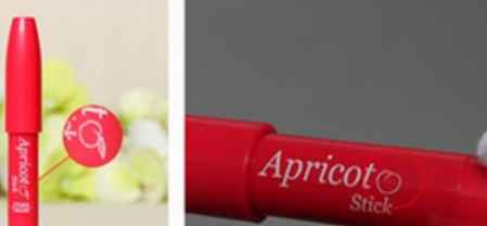 一看笔身上和桃子图案细节,注意正品笔身上的“杏桃”图案是带有一片叶子的,而假货所印刷的图案是没有叶子的,看到这里,不免嘀咕了一下,做假货也应该用心点啊