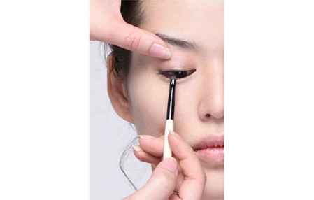 第五步:用眼线膏点化的方式填满睫毛根部的空隙,不用刻意画出一条明显的眼线。