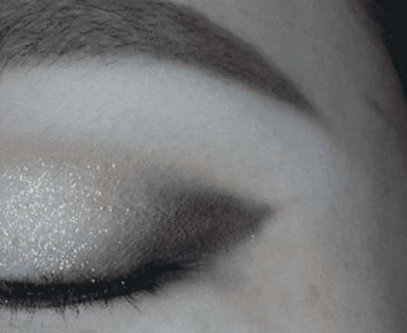 第八步:选择一个金色眼影膏,用纤维刷沾取,在眼皮上轻拍,下眼线也可以带一点,眼影完成。