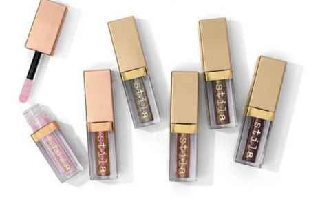 STEP6:上眼睑前半段涂抹上亮晶晶的金色亮片眼影。